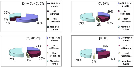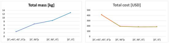 4.5. Results of the Structural Optimization for Different Face Sheets’ Layer Sequences