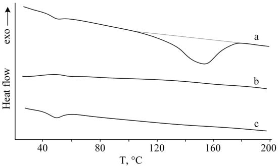 A differential scanning calorimetry study of the resulting polymer demonstrated that, apart from the heat capacity step at 40–60 °C corresponding to the glass transition temperature, the curve shows a broad endotherm in the range of 95–180 °C (Figure 2a).