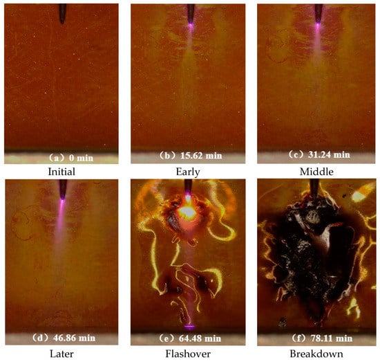 - Zhang, K.; Zhang, L.; Li, Z.; Zhao, T.; Zou, L. Analysis of the Phenomena and Characteristics of Gas-Solid Insulation Surface Discharge under High Frequency Sinusoidal Electrical Stress. Trans. China Electrotech. Soc. 2019, 34, 3275–3284. [Google Scholar]