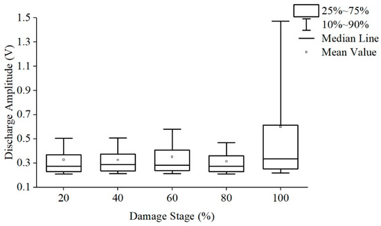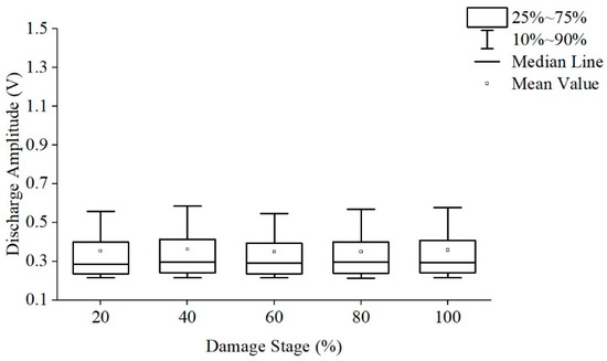 According to the characteristics of creeping discharge, the creeping discharge process is normalized and divided into five stages and count the discharge amplitude and average number of discharges under each stage. The discharge amplitudes are shown in Figure 7 and Figure 8, respectively. The average discharge times of discharges is shown in Figure 9.