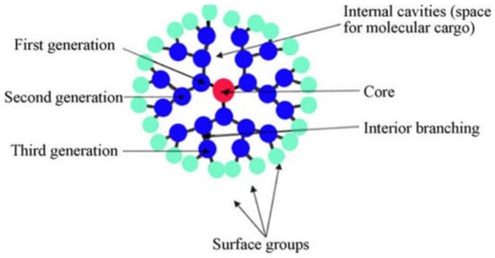 Representative illustration of the general structure of dendrimers. Reprinted with permission from []. Copyright 2010 Elsevier.