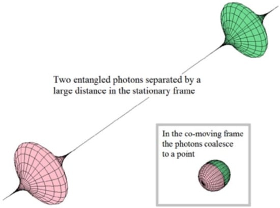 Illustration of two entangled photons. The state of one of them is instantaneously transferred to the other one. Reprinted with permission from []. Copyright 2015 Serials Publications.