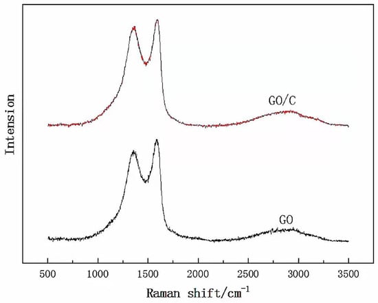 The Raman spectra of graphene oxide (GO) and GO plus 1 g MCC composite (GO/C-1 g).