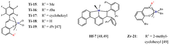 The titanium and zirconium complexes with tetradentate ligands make one of the groups most often used in olefin copolymerization. S.E. Reybuck et al. [