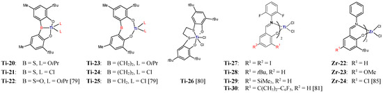 59], respectively. Nevertheless, their copolymerization behavior is influenced by the nature of substituents in the ligands. The increasing steric hindrance on the aryloxy moiety of the phenoxy-phosphine ligand was shown to improve the catalytic activity (