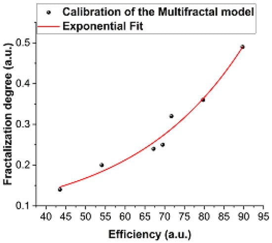 The calibration of the model is described in Figure 6 where the efficiency of the system is plotted as a function of the fractalization degree as given by the model. An exponential function proved to be the best calibration fit.