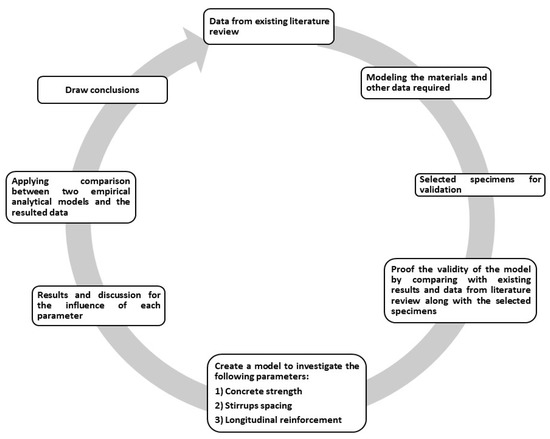 - Tahenni, T.; Bouziadi, F.; Boulekbache, B.; Amziane, S. Experimental and nonlinear finite element analysis of shear behaviour of reinforced concrete beams. Structures 2021, 29, 1582–1596. [Google Scholar] [CrossRef]
