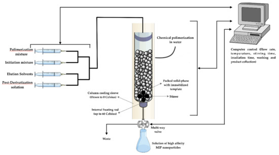 - Poma, A.; Guerreiro, A.; Caygill, S.; Moczko, E.; Piletsky, S. Automatic reactor for solid-phase synthesis of molecularly imprinted polymeric nanoparticles (MIP NPs) in water. RSC Adv. 2014, 4, 4203–4206. [Google Scholar] [CrossRef]