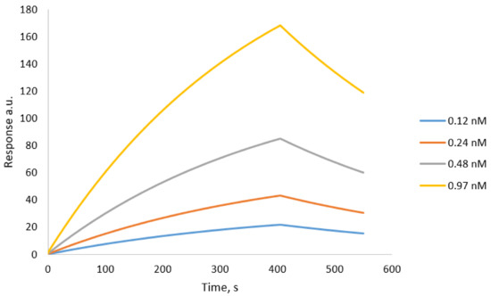 Finally, affinity analysis, the interaction analysis was performed using a Biacore 3000 instrument at 25 °C using PBS as the running buffer at a flow rate of 15 µL min−1. The aqueous suspensions of the tested nanoparticles were diluted in PBS for the analysis following the series of 2× dilutions. The range of concentrations of non-modified nanoMIPs was from 0.12 nmol to 0.97 nmol L−1.