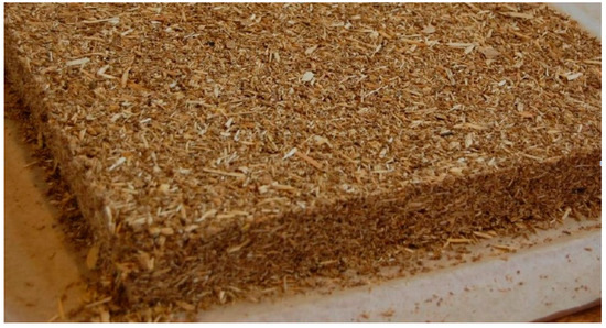 The 400 mm × 400 mm particleboards, with a thickness of 15 mm and densities ranging from 550 to 850 kg/m3 were pressed in four different groups (0% BSG, 10% BSG, 30% BSG and 50% BSG) with three replications for each board (Table 1, Figure 1).