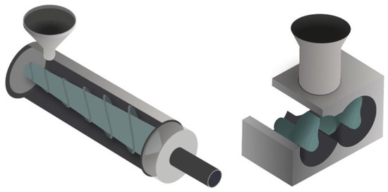 The extrusion process, a well-known and wildly used process in the plastic industry, can also be used to make SPE. There has been interest in applying this process to battery manufacturing in both academic and industrial fields (Figure 3) [25,26,27,28]. However, industrial-grade extruders require high quantities of materials, which is often challenging at the academic scale. For this reason, the internal mixer is frequently chosen by academics as it fulfills the same purpose as the extruder.