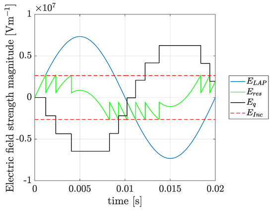 - For each time-step the electric field strength is calculated using a Finite Element Analysis solver at all domains;