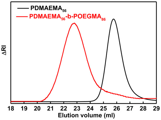 | PDMAEMA56-b-POEGMA86 | 4.95 | 1.4 | - | 16 | 82 | - | - |