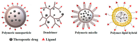 Polymer nanoparticles (PNPs) can be of various morphology and composition in the core or periphery, for example dendrimers, polymeric micelles, polymer-lipid hybrid and polymeric nanoparticles (Figure 2). Depending on the method of synthesis, a drug can be either physically entrapped in the core of the PNPs or covalently bound to the matrix of PNPs.
