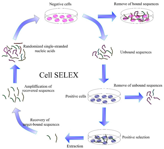 - Chen, M.; Yu, Y.; Jiang, F.; Zhou, J.; Li, Y.; Liang, C.; Dang, L.; Lu, A.; Zhang, G. Development of cell-SELEX technology and its application in cancer diagnosis and therapy. Int. J. Molec. Sci. 2016, 17, 2079. [Google Scholar] [CrossRef]