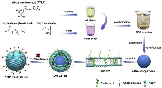 - Gui, K.; Zhang, X.; Chen, F.; Ge, Z.; Zhang, S.; Qi, X.; Sun, J.; Yu, Z. Lipid-polymer nanoparticles with CD133 aptamers for targeted delivery of all-trans retinoic acid to osteosarcoma initiating cells. Biomed. Pharmacother. 2019, 111, 751–764. [Google Scholar] [CrossRef]