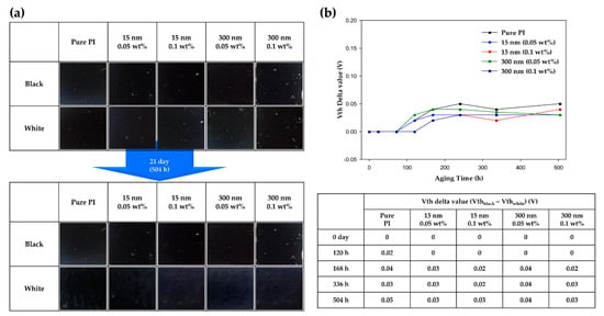 Chicago/Turabian StyleSon, Seung-Rak, Jongil An, Jin-Wook Choi, and Jun Hyup Lee. 2021. "Fabrication of TiO2-Embedded Polyimide Layer with High Transmittance and Improved Reliability for Liquid Crystal Displays" Polymers 13, no. 3: 376. https://doi.org/10.3390/polym13030376