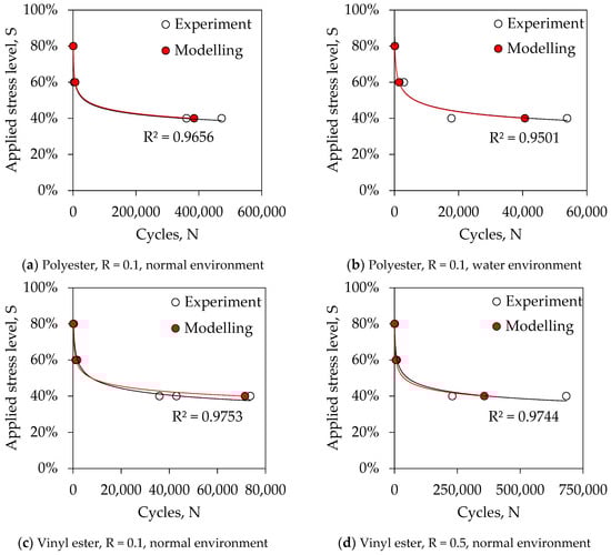 | Sample Name | Types of Resin | Stress Ratio, R | Environmental Conditions | Applied Max Stress Level, S | No. of Tested Samples | Failure Modes |