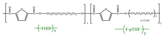 Structure of poly(hexamethylene 2,5-furanodicarboxylate)-block-poly(tetrahydrofuran) (PHF-b-F-pTHF copolymers).