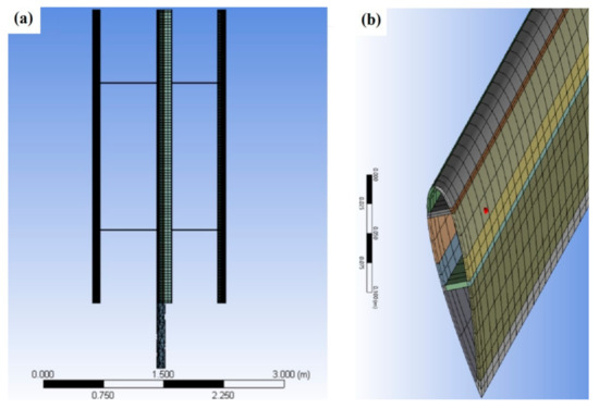 The FEA modeling of the optimized VAWT with composite blades was carried out using the ANSYS Static Structural module [25], which is commonly used FEA modeling software. The FEA modeling procedure was applied to the optimized VAWT geometry. This section includes a detailed description of the geometry, meshing, materials, and boundary conditions that were implemented in the FEA model.