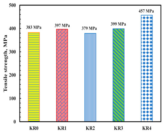 The pressure from the vacuum pump provides both the driving force for the epoxy/MWCNTs mixture to flow inside the cavity and the compression force to compact the preform to the Kevlar volume fraction. The vacuum was left for 30 min until the resin had completely gelled. The Kevlar/epoxy/MWCNTs composites were cured at room temperature for one day. Five samples (KR0, KR1, KR2, KR3, and KR4) were prepared using a matrix made of neat epoxy, unmodified MWCNTs 0.1% and 0.5%, and COOH-functionalized MWCNTs 0.1% and 0.50%, as listed in Table 4.