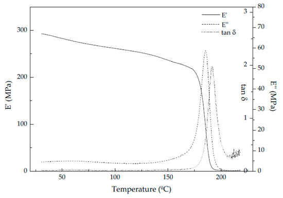 Typical storage modulus (E′), loss modulus (E″), and tan δ curves of PSU-GnP foams (15 PSU-2 wt% GnP).