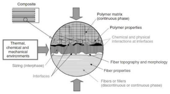 Schematic illustrating interface of fiber/matrix composite. Reproduced with permission from [12]. Copyright 2013 John Wiley and Sons.