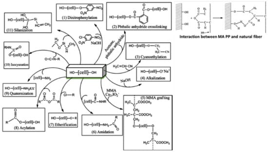 Chemical modification treatments on fiber’s surface. Reproduced with permission from [40]. Copyright 2019 Elsevier.