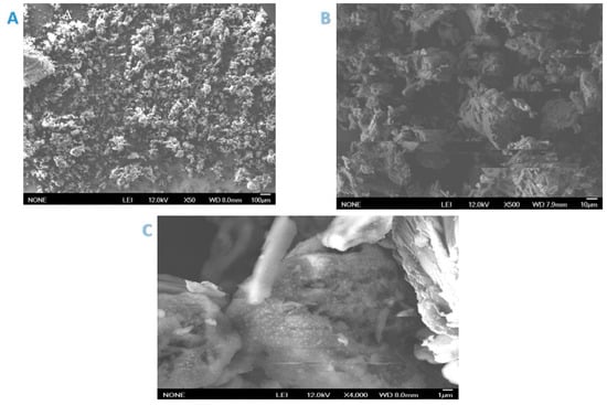 To study the adsorbents’ surface morphology, we used scanning electron microscopy (SEM). For this, the samples were fixed onto a double-sided C tape and mounted onto a sample holder. All samples were subjected to sputter-coating of a 10-nm-thick gold film onto them in order to minimize charging effects for taking high-magnification images. The samples were placed into a vacuum sample chamber, and micrographs were obtained using an emission scanning electron microscope (JEOL 7400F; Oxford Instruments Inca, Tubney Woods, Abingdon, Oxon OX13 5QX, UK).