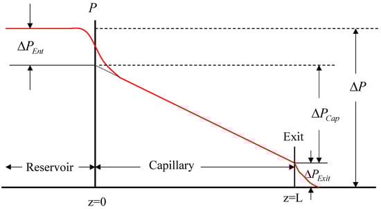 Schematic diagram of the entry and exit pressure losses in flow through a capillary rheometer (reservoir to die).