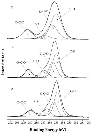 48], while the contribution that appears at 288.9 eV is due to ester (O=C–O) functionality [