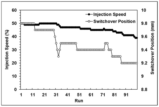 Tsai [15] developed an adaptive system that was dependent on a neural network prediction system and used the injection speed, switchover position, and cavity temperature through the neural network system to predict the pressure curve characteristics. With this system, the variations of the product weight were decreased to 0.14%, and it was proven that the injection speed is an important parameter for the injection process.