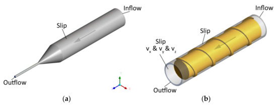 - Hatzikiriakos, S.G.; Mitsoulis, E. Slip Effects in Tapered Dies. Polym. Eng. Sci. 2009, 49, 1960–1969. [Google Scholar] [CrossRef]