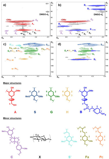 - Wen, J.-L.; Sun, S.-L.; Xue, B.-L.; Sun, R.-C. Recent Advances in Characterization of Lignin Polymer by Solution-State Nuclear Magnetic Resonance (NMR) Methodology. Materials 2013, 6, 359–391. [Google Scholar] [CrossRef]