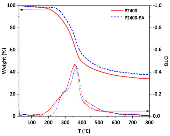 TGA curves of P2400 and P2400-PA (10 °C min−1, N2).