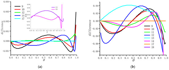 For specific material pyrolysis reactions, q, m, n and p are constants. In order to verify the universality and accuracy of Equation (4), the difference between Equation (4) and the integral form of the existing reaction mechanism functions in Table 1 is taken as the evaluation index. The calculated results are compared with those solved by Equation (3), as shown in Figure 3.