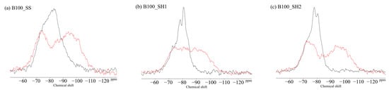 Solid-state 29Si MAS NMR chemical shifts for (a) B100_SS, (b) B100_SH1, and (c) B100_SH2 samples.