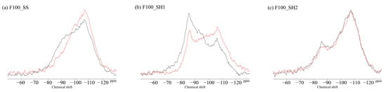 Solid-state 29Si MAS NMR chemical shifts for (a) F100_SS, (b) F100_SH1, and (c) F100_SH2 samples.