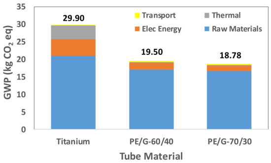 Figure 9. Global warming potential (GWP) for titanium and polymer tubes.