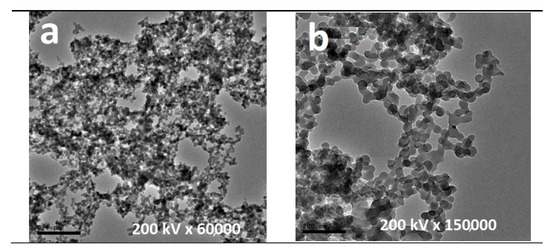 TEM micrographs of nano-sized oxides and polymer nanocomposites were studied. Regarding this issue, some micrographs of their polymeric structure and dispersed metallic particles are exhibited. As images display, pure nanoparticles were spherical flaked and randomly distributed in several areas, whereas particle agglomerates still existed and remained almost free areas (Figure 6).
