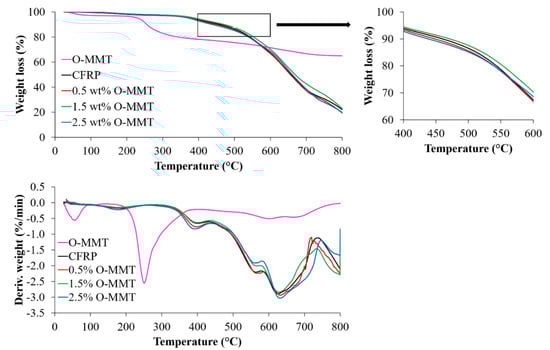 3.5. Thermal Stability of the CFRP/O-MMT Composites