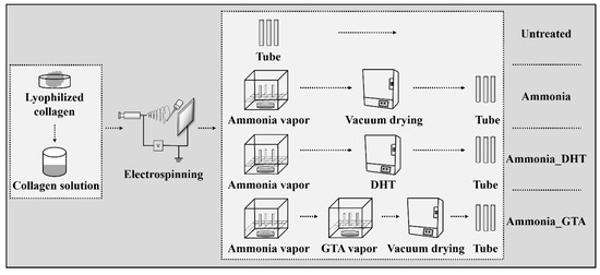A schematic image of the preparation of collagen tube and various treatments were applied.