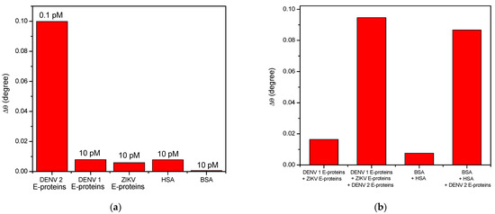 - Kumbhat, S.; Sharma, K.; Gehlot, R.; Solanki, A.; Joshi, V. Surface plasmon resonance based immunosensor for serological diagnosis of dengue virus infection. J. Pharm. Biomed. Anal. 2010, 52, 255–259. [Google Scholar] [CrossRef]