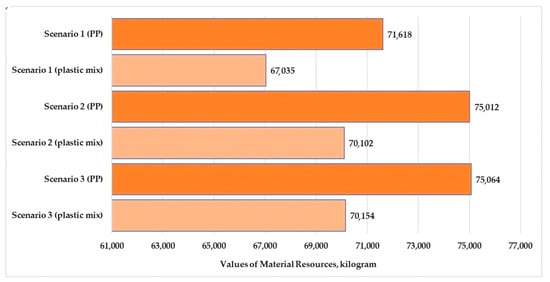Values of material resources for polypropylene and mixed-plastic products for the different scenarios (functional unit: 28 kg product).