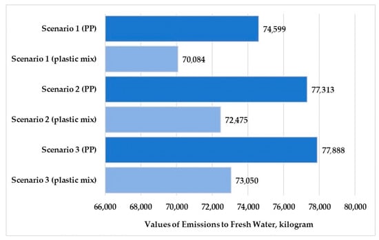 Values of emissions to fresh water for polypropylene and mixed-plastic products for the different scenarios (functional unit: 28 kg product).