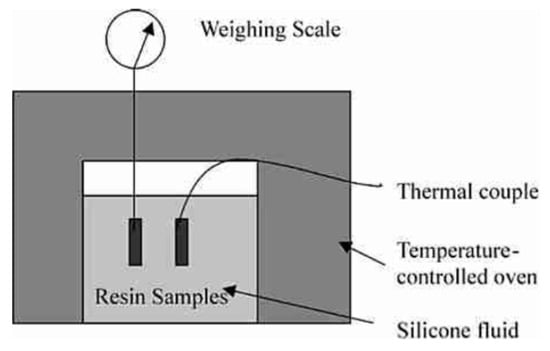 Sealing the resin in a thin-walled silicone rubber bag and subsequent suspension in a silicone bath enable the in-situ measurement of the shrinkage of liquid epoxy resins during isothermal curing (Figure 5) [27].