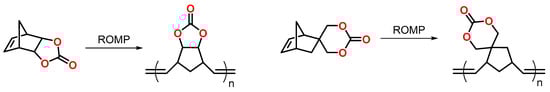 ROMP of norbornenes with five- and six-membered cyclic carbonate groups.