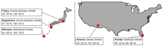 Ishida, T.; Kitagaki, R. Mathematical Modeling of Outdoor Natural Weathering of Polycarbonate: Regional Characteristics of Degradation Behaviors. Polymers 2021, 13, 820. https://doi.org/10.3390/polym13050820