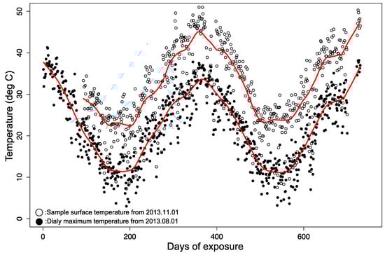 - Pickett, J.E.; Sargent, J.R. Sample temperatures during outdoor and laboratory weathering exposures. Polym. Degrad. Stab. 2009, 94, 189–195. [Google Scholar] [CrossRef]
