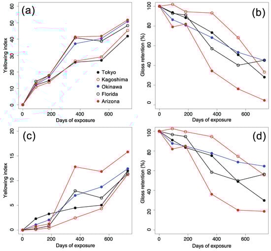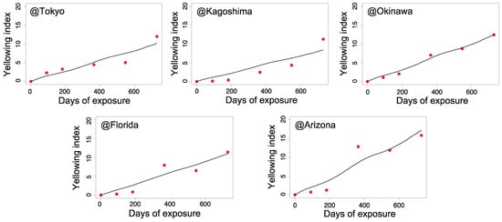 Chicago/Turabian StyleIshida, Takato, and Ryoma Kitagaki. 2021. "Mathematical Modeling of Outdoor Natural Weathering of Polycarbonate: Regional Characteristics of Degradation Behaviors" Polymers 13, no. 5: 820. https://doi.org/10.3390/polym13050820